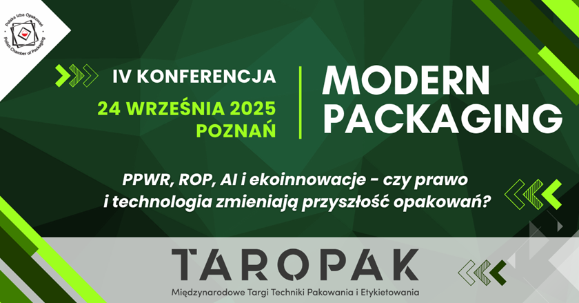 Polska Izba Opakowań zaprasza do udziału Konferencji Modern Packaging, która odbędzie się 24 września 2025 roku, podczas targów TAROPAK i POLAGRA na Międzynarodowych Targach Poznańskich. Eksperci poszukają odpowiedzi na pytanie - Czy prawo i technologia zmieniają przyszłość opakowań?