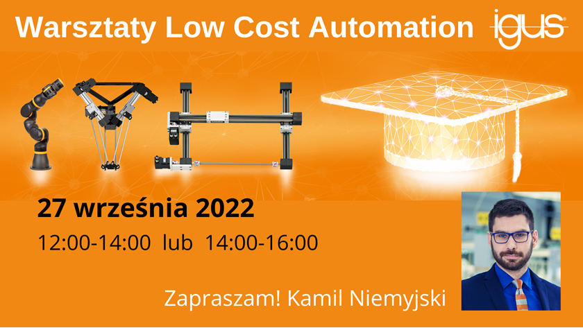 Drugiego dnia targów eksperci poprowadzą również warsztaty Low Cost Automation z igus®. Odbędą się one 27 września 2022 r. o godz. 12:00 oraz o 14:00. Szkolenia będą bezpłatne!